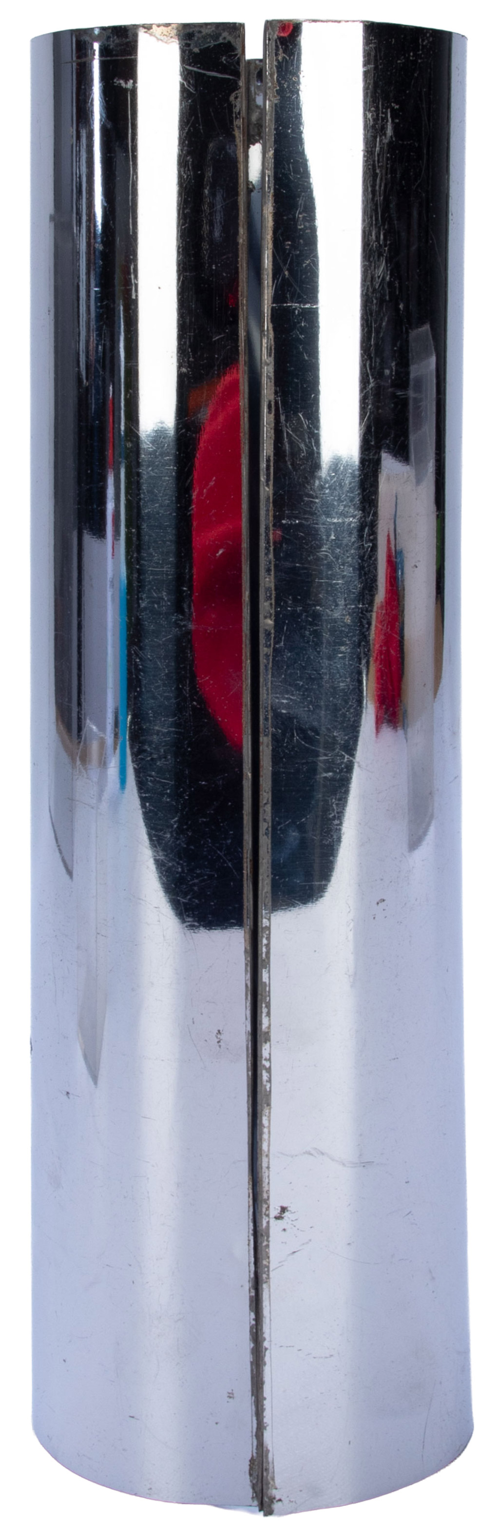 Heavy chrome plated brass tube. When closed and latched, a large production of silks is made. Faint scratches to the surface, else in good condition.
