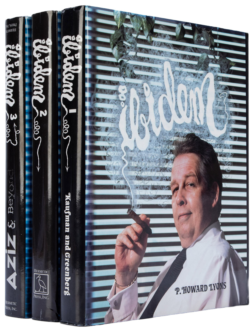 Matching three-volume set of the authorized reprints of Ibidem, in publisher's hardcover volumes with dust jackets. Illustrated, including color plates of Pat Lyons' remarkable and creative cover designs, originally printed via the silkscreen process. Includes the original run (N1 Jun. 1955 - N36 Mar. 1979) and the follow-up publication Aziz. Alfredson/Daily 2885. Small chip to jacket of volume one, small soiling spots to page corners, else in very good condition.