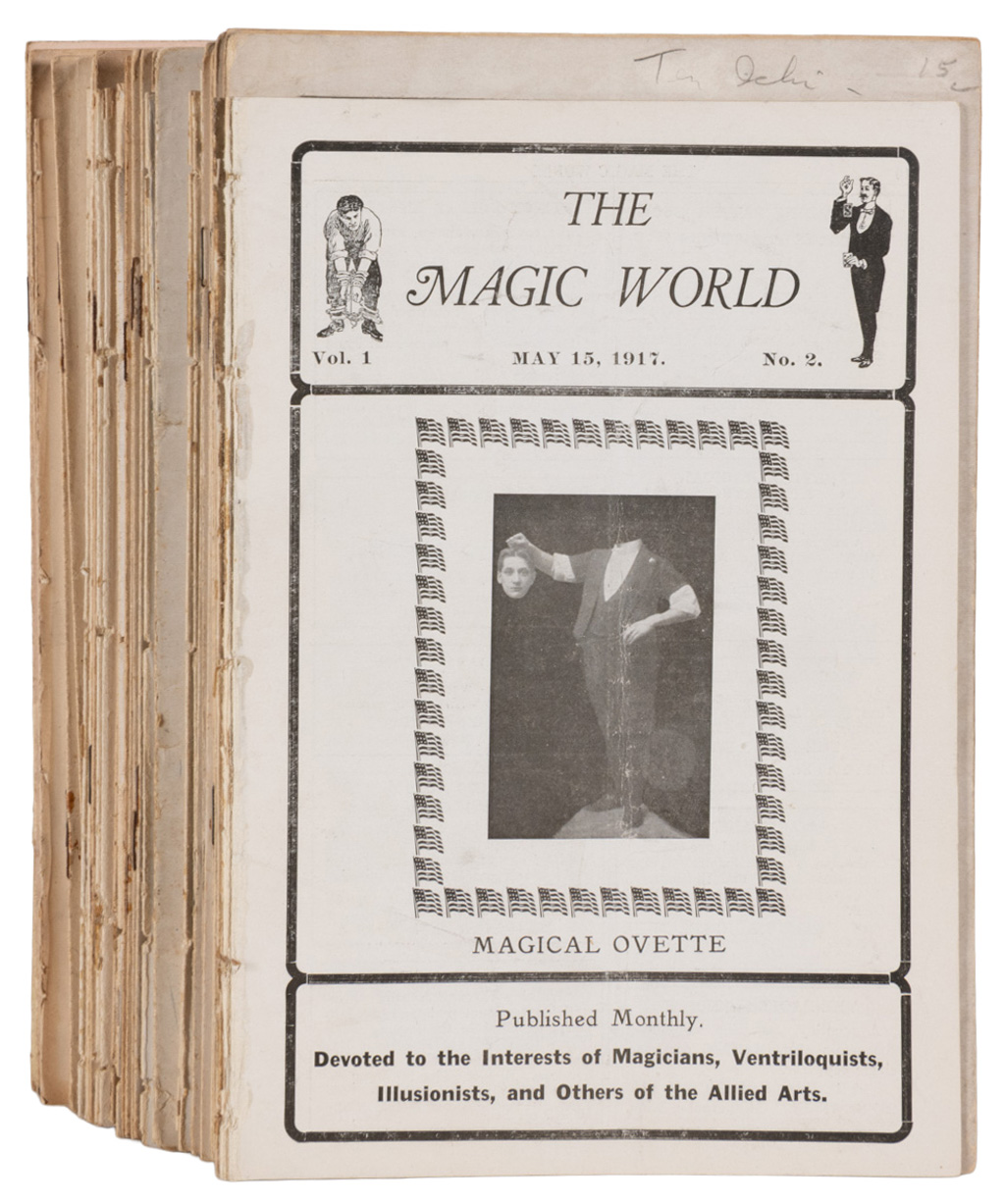 Partial file of The Magic World. Lacks V1 No. 1, No. 8, No. 9, and No. 12. Includes some duplicate issues among the balance. A fascinating look at the British magic scene of the era. Scarce. Alfredson/Daily 4150.