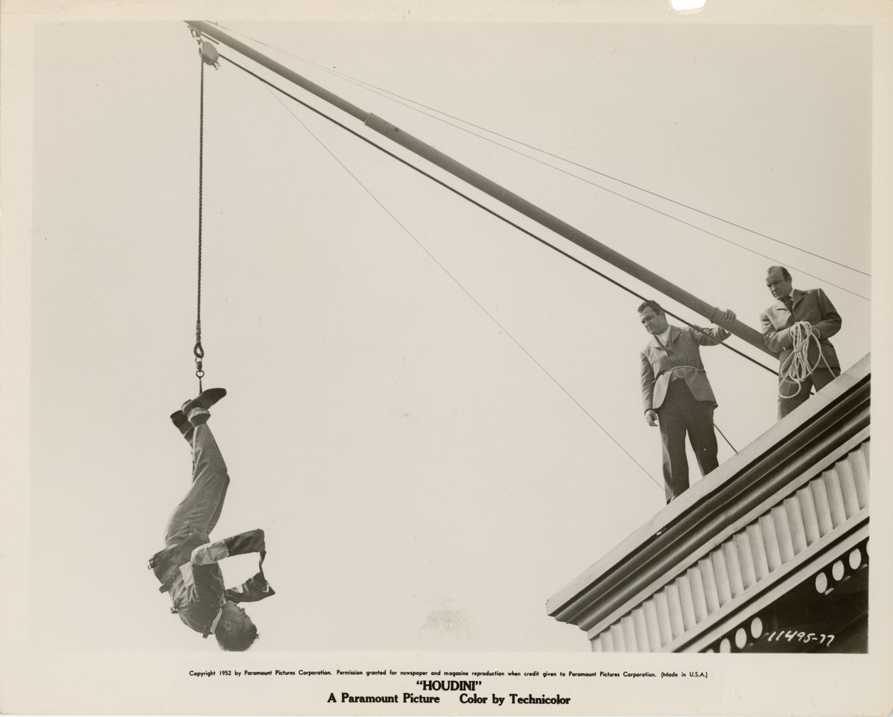 Black and white publicity photograph of the movie “Houdini” from 1952. Chips, mild toning, fair condition.