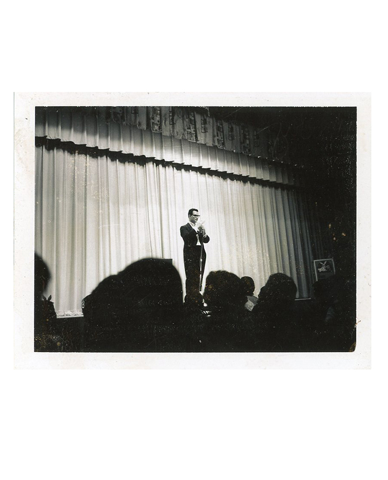 Small black and white photograph of Harry Blackstone Jr. on stage, signed on reverse. Mild soiling, else in very good condition.
