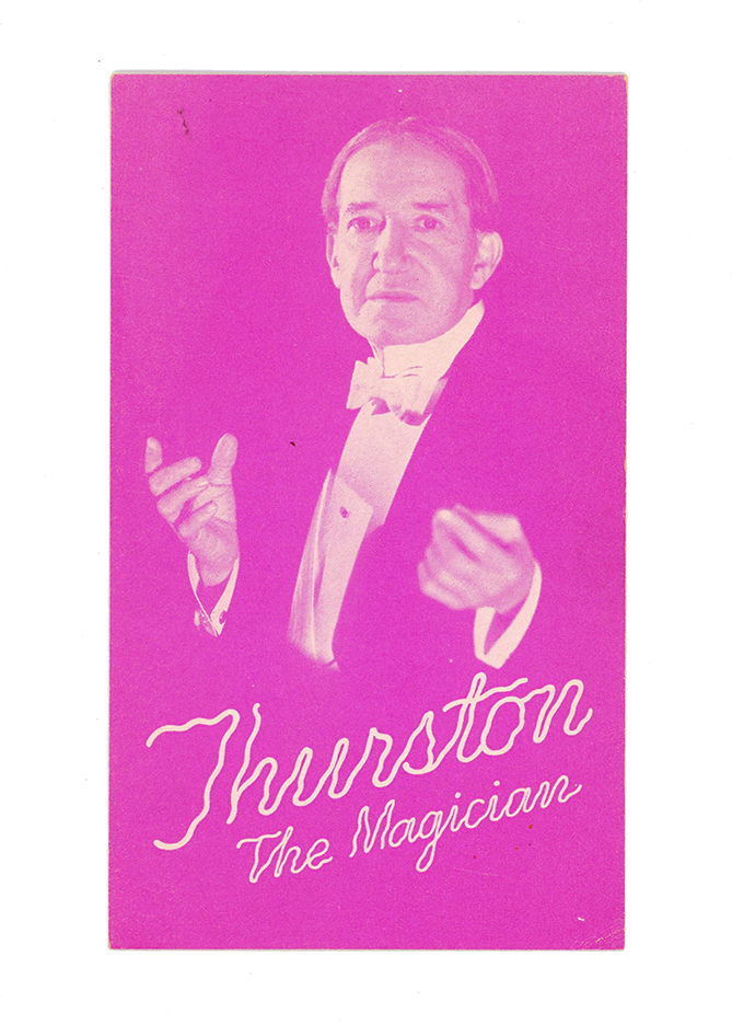 Monochrome 3/4 length portrait of Thurston on the recto, the verso filled with text regarding his radio programs sponsored by Swift & Company. Excellent condition. Scarce.