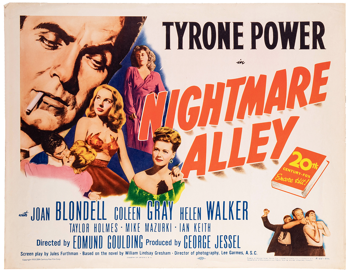 Half-sheet re-release of the film noir classic starring Tyrone Power and Joan Blondell, based on the William Lindsay Gresham novel. Rolled. Unmounted. Small chips and edgewear. B/B+.