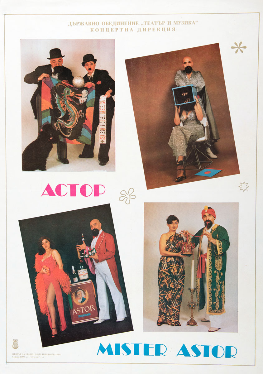 Full color poster of Mr. Astor. Photographs of act with Cyrillic captions. Verso reads "Bulgarian, 1982" in pencil. Minor edgewear. Unmounted.