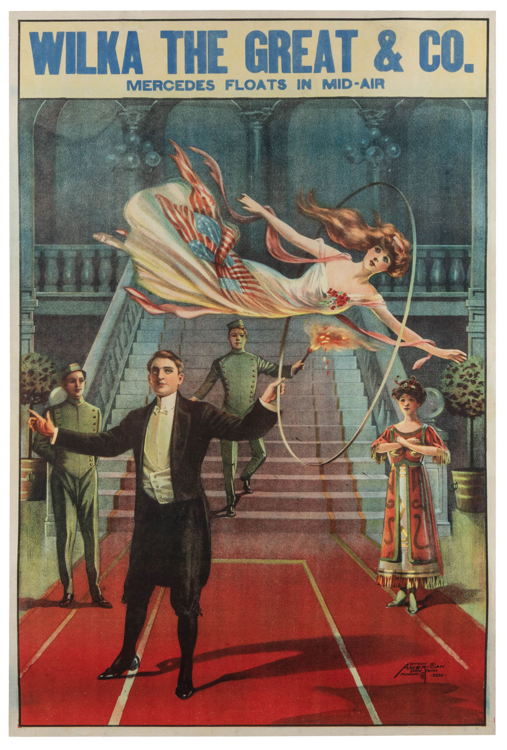 Poster for Wilka the Great & Co. depicting him floating a woman in the air. Faint crease lines, A-.