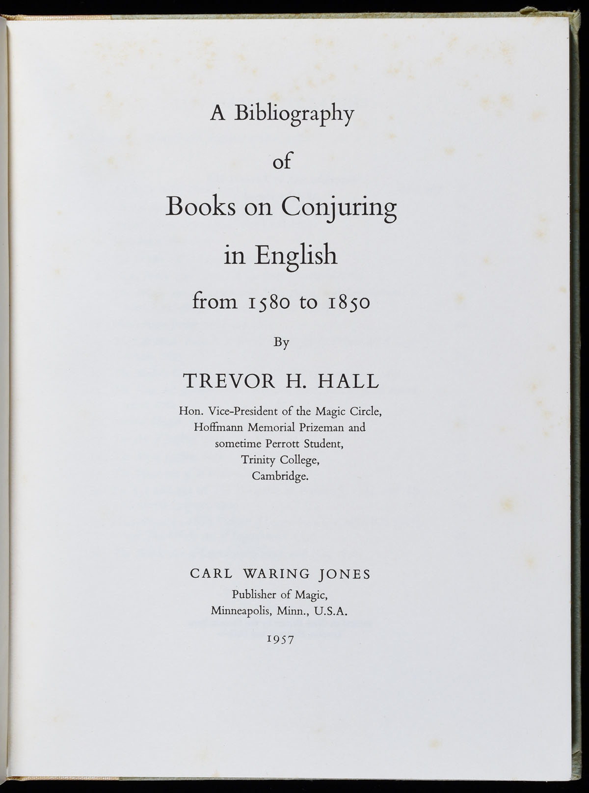 Bibliography of Books on Conjuring in English, 1580 - 1850