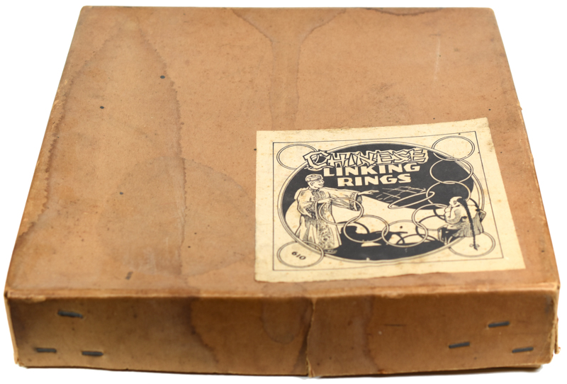 Set of eight stainless steel Chinese Linking Rings by Sherms. In the original box. Water marks to the box, rings in very good condition.