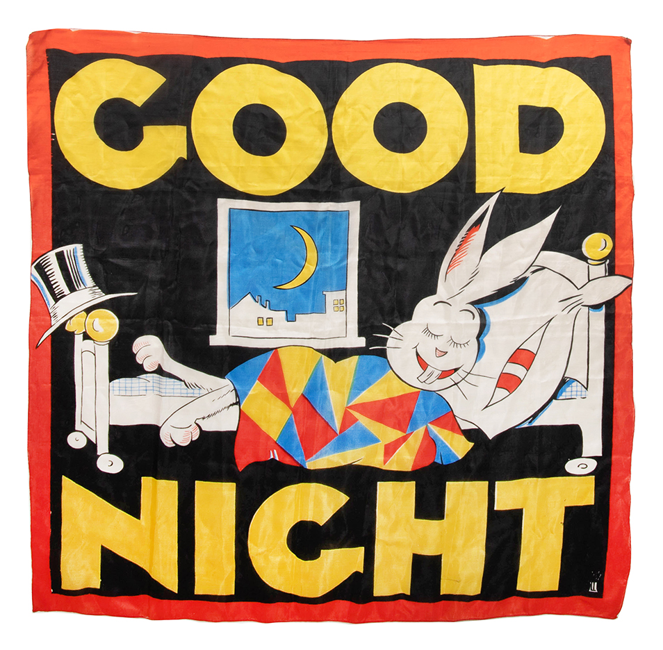 A vintage good night silk by Tannen’s. Hallmarked with the LT logo. Some corners lightly frayed, else in good condition.