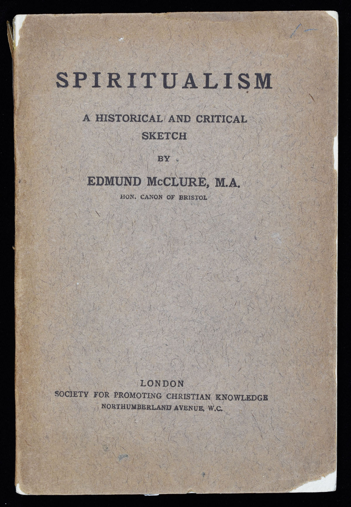 Original tan wrappers, 56 pgs. A Christian point-of-view critique of spritualism and mediumship. Wrappers toned and lightly chipped, a few pages with spots.