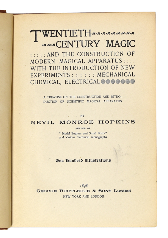 Brick cloth with stamping on front cover and spine. Illustrated, 160 pages. From Oscar Teale's library who was a secretary for Harry Houdini. Inside the hinges cracked, corners rubbed, else in good condition.