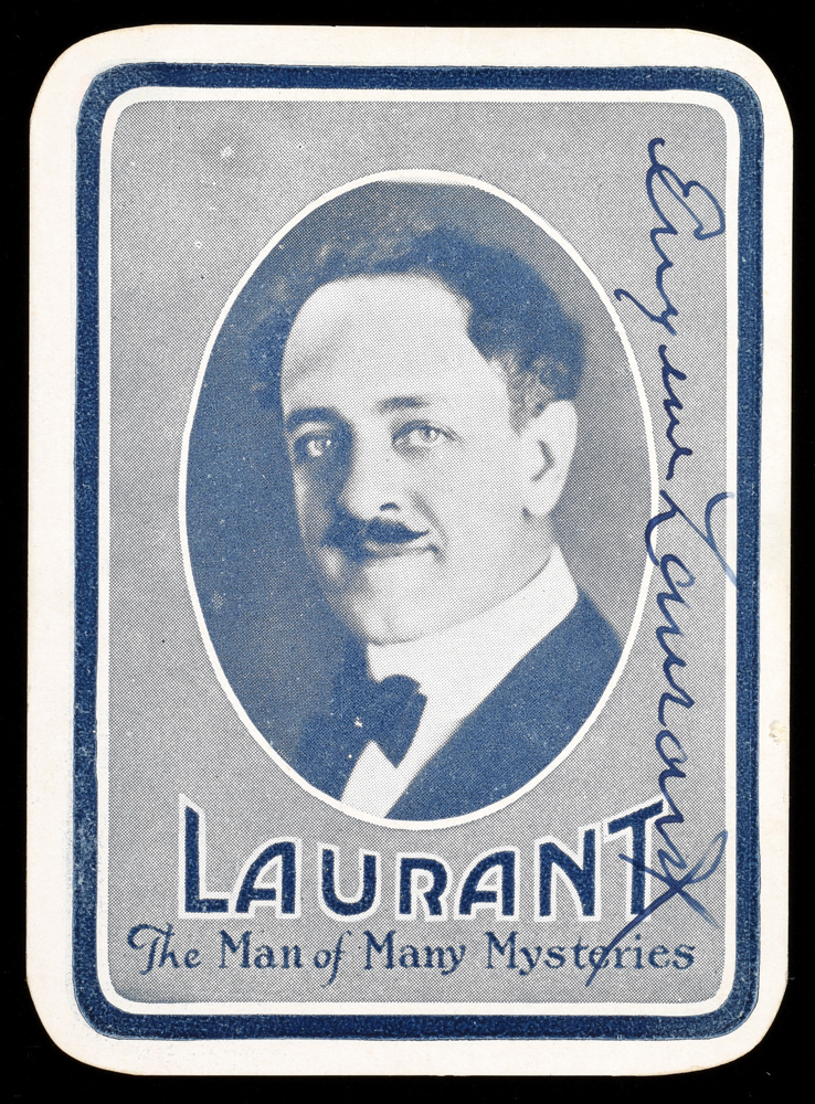 Bearing Laurant's bust and signed by "The Man of Many Mysteries" along the right side. Printed with Cracker Jacks advertised on the reverse. Mild edge wear, else very good.