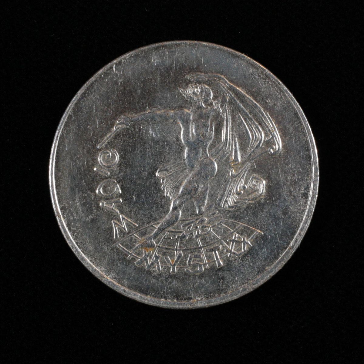 A devil with cape and wand dancesover the Mysto brand name on both sides. Minor wear, may have imperfections. Generally in good condition. MT 259